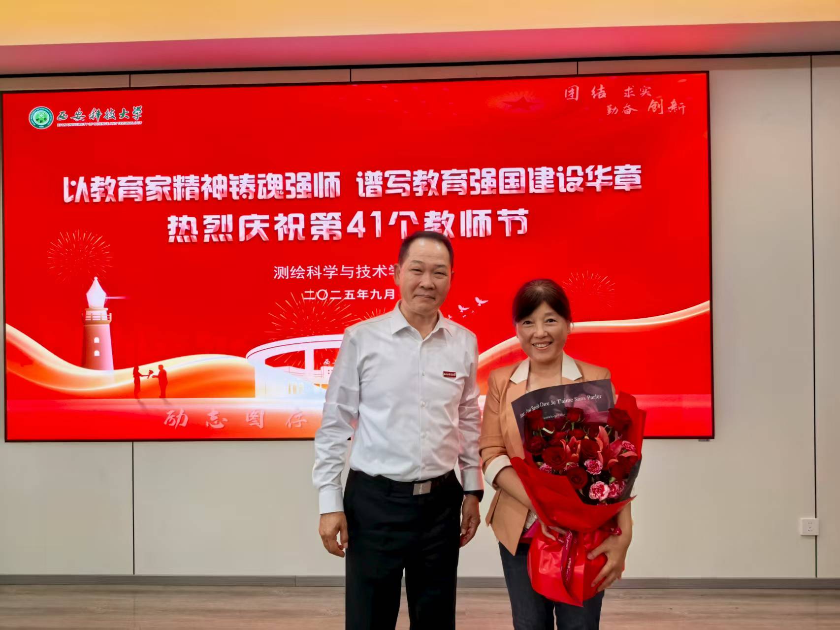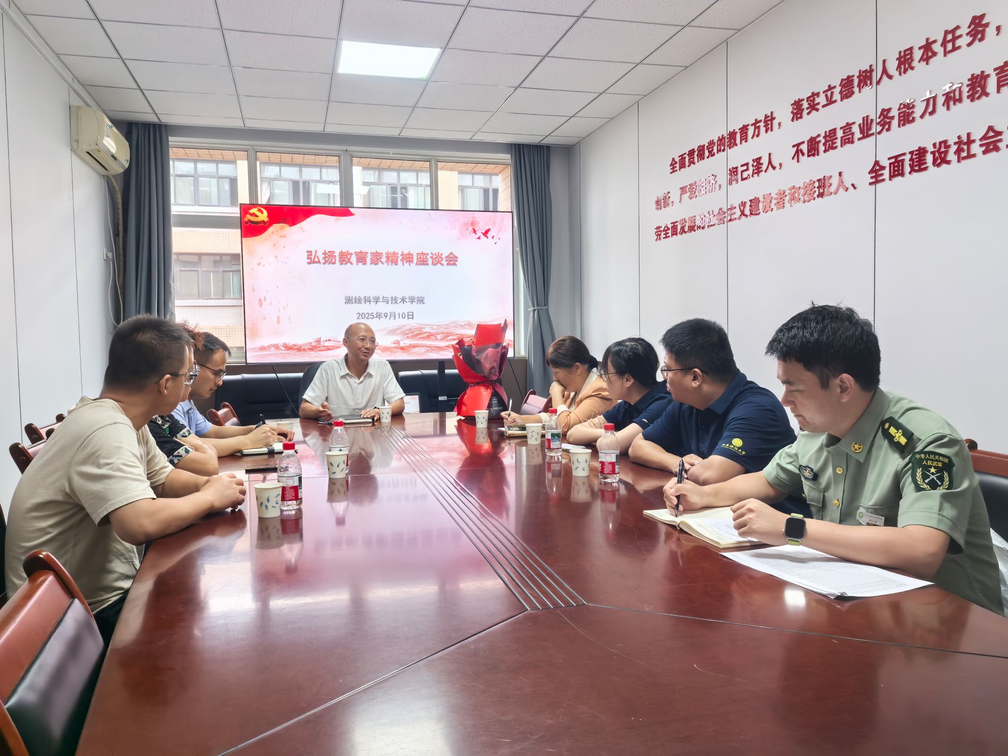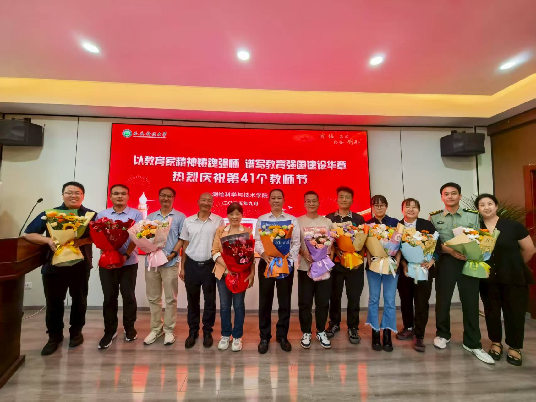 为庆祝第41个教师节,响应“以教育家精神铸魂强师,谱写教育强国建设华章”主题,tyc122cc举办了离退休老教师看望慰问、在职教职工代表慰问座谈、员工祝福老师、员工党员清洁整理教研室、点亮教师节等活动,营造尊师重教良好氛围。