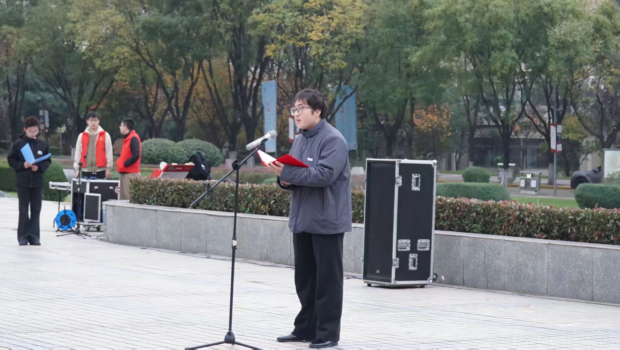 红言宣讲团刘国龙深情讲述了青年对祖国的赤诚,句句真挚,是对“强国有我”的践行。让同学们懂得传承是对历史最好的致敬,而守护好我们今天和平安宁的校园,正是我们对历史最好的告慰。