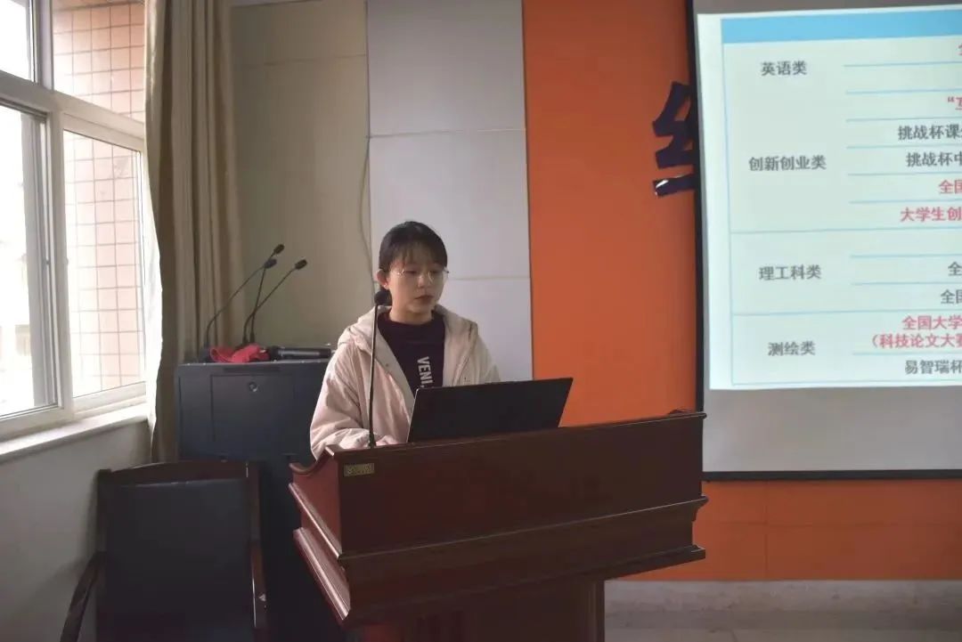 常璐璐讲解了青年一代拥有科创精神的重要性,并详细讲解科创竞赛的比赛分类,团队组建等注意事项,最后常璐璐告诉同学们要勇于迈出第一步,明确方向,保持执行力,从竞赛中不断提升自身的科创能力。