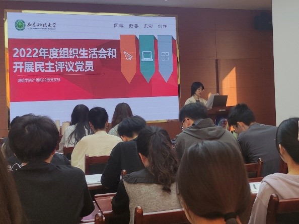 为深入学习领会党的二十大精神,全面贯彻新时代中国特色社会主义思想,弘扬伟大建党精神,3月9日下午,22级研究生党员于煤科楼513会议室召开民主评议党员工作会。会议由22级党支部副书记吴辉主持会议,党支部书记宋莹老师和22级全体研究生党员参与了此次活动。