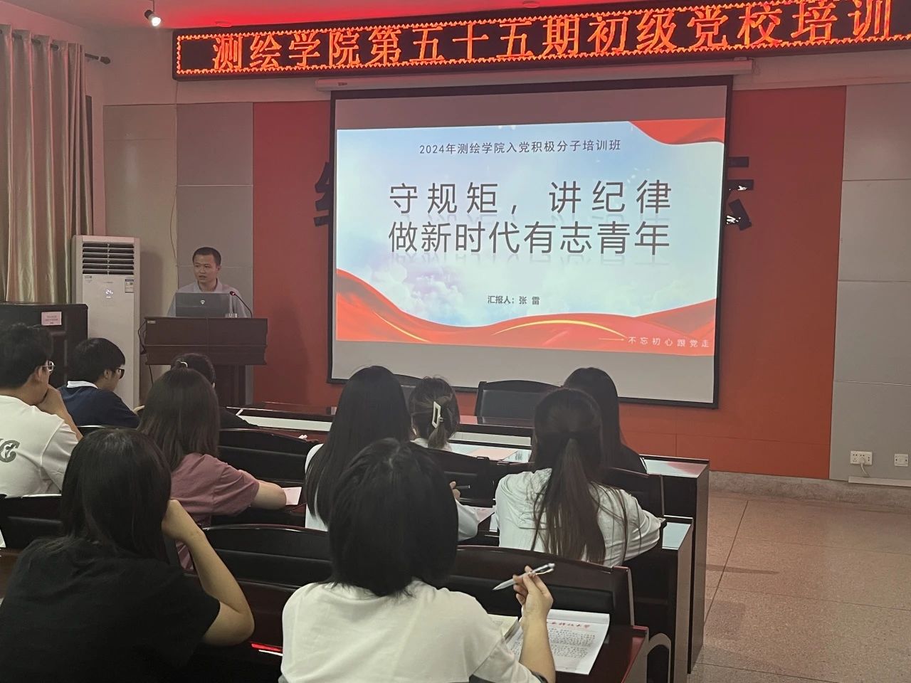 为深入学习贯彻习近平新时代中国特色社会主义思想和党的二十大精神,进一步加强对入党积极分子的培养教育考察,2024年6月3日,tyc122cc开展以“守规矩,讲纪律,做新时代有志青年”为题的初级党校专题培训。