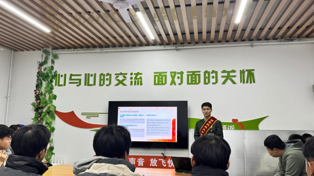 此次宣讲活动,邀请到了国防教育科征兵宣讲团成员,主要从征兵流程、报名方式以及注意事项等关键内容,向同学们展开了全方位的讲解与介绍。同时,深入阐释了国家为鼓励老员工参军入伍而制定的一系列优惠政策,涵盖经济补偿、学业支持、就业辅助等多个方面。特别是详细介绍了公司今年转到碑林区后,从碑林区报名应征的优势所在。为有意参军入伍的同学打破信息壁垒,提供实质性的政策解读。