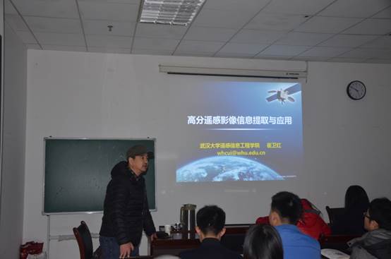 12月23日上午,武汉大学遥感信息工程公司崔卫红博士应邀到公司作了题为“高分遥感影像信息提取与应用”的学术报告,tyc122cc相关专业师生共80多人到场聆听讲座。