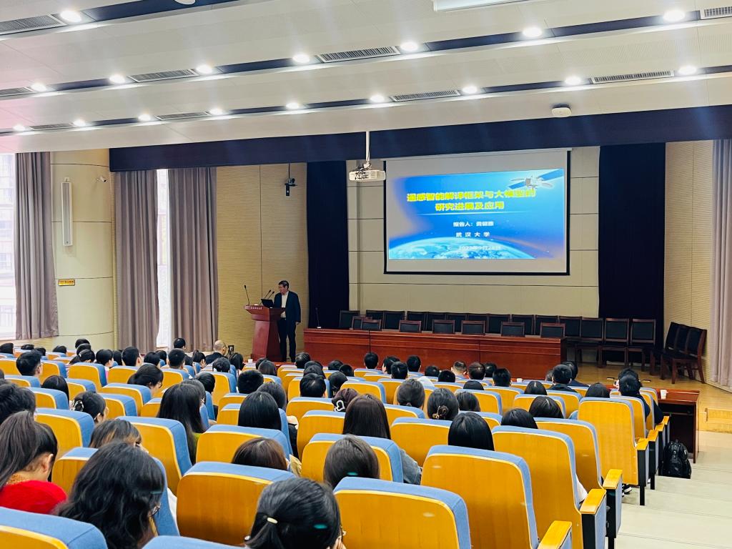 报告会期间,龚健雅院士主要从深度学习与智能解译研究现状展开论述,详细介绍遥感影像样本库LuoJiaSET、遥感专用机器学习框架LuoJiaNET两个主要研究方向。简述了武汉大学在深度学习遥感解译方向目前的研究成果,同时结合相关研究案例让同学们直观的认识到基于深度学习遥感解译的高效性。最后,龚健雅院士对该领域未来的发展和展望做了总结。