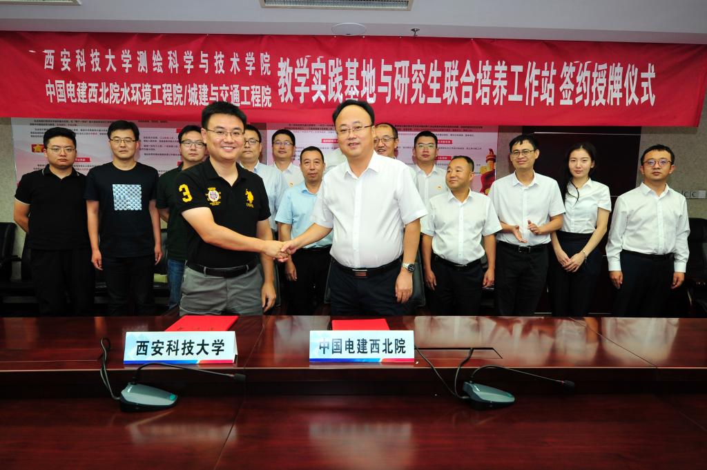 最后,李经理和电建西北院雷经理代表双方单位签署校企合作协议,共同为“tyc122cc本科实践基地及研究生联合培养工作站”揭牌。