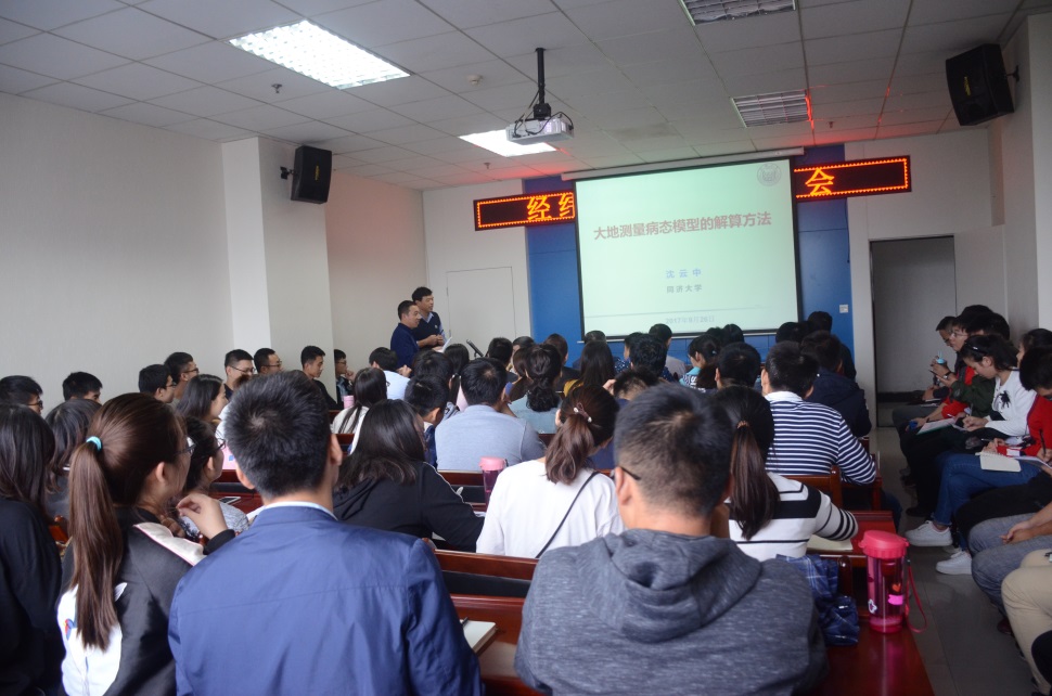 2017年9月26日教育部中国大陆构造环境监测网络联合研究中心同济大学分中心主任沈云中教授及国际著名大地测量学家徐培亮教授莅临tyc122cc,分别做了题为“大地测量病态模型的解算方法”与“整体最小二乘”的学术报告。报告会由tyc122cc副经理汤伏全教授主持,tyc122cc100多名研究生参加了报告会。