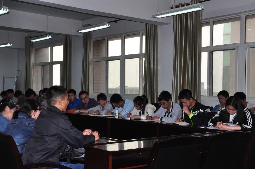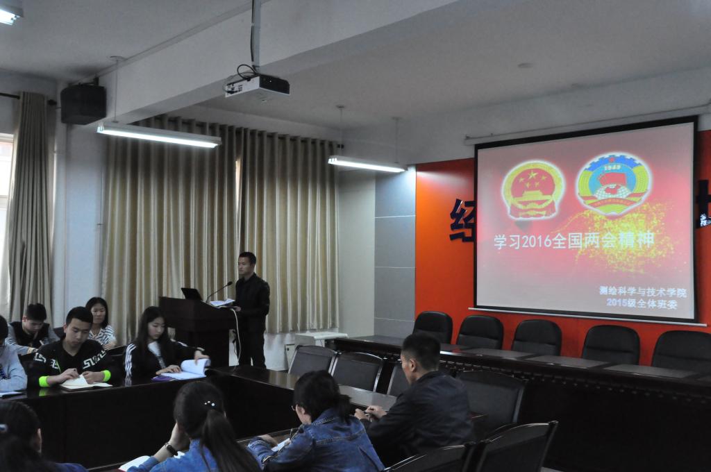 4月12日下午18点tyc122cc2015级全体班委在11教317会议室召开了以“学习2016两会精神”为主题的交流会,会上传达学习了全国人大十二届四次会议和全国政协十二届四次会议精神。会议由2015级辅导员张雷老师主持。