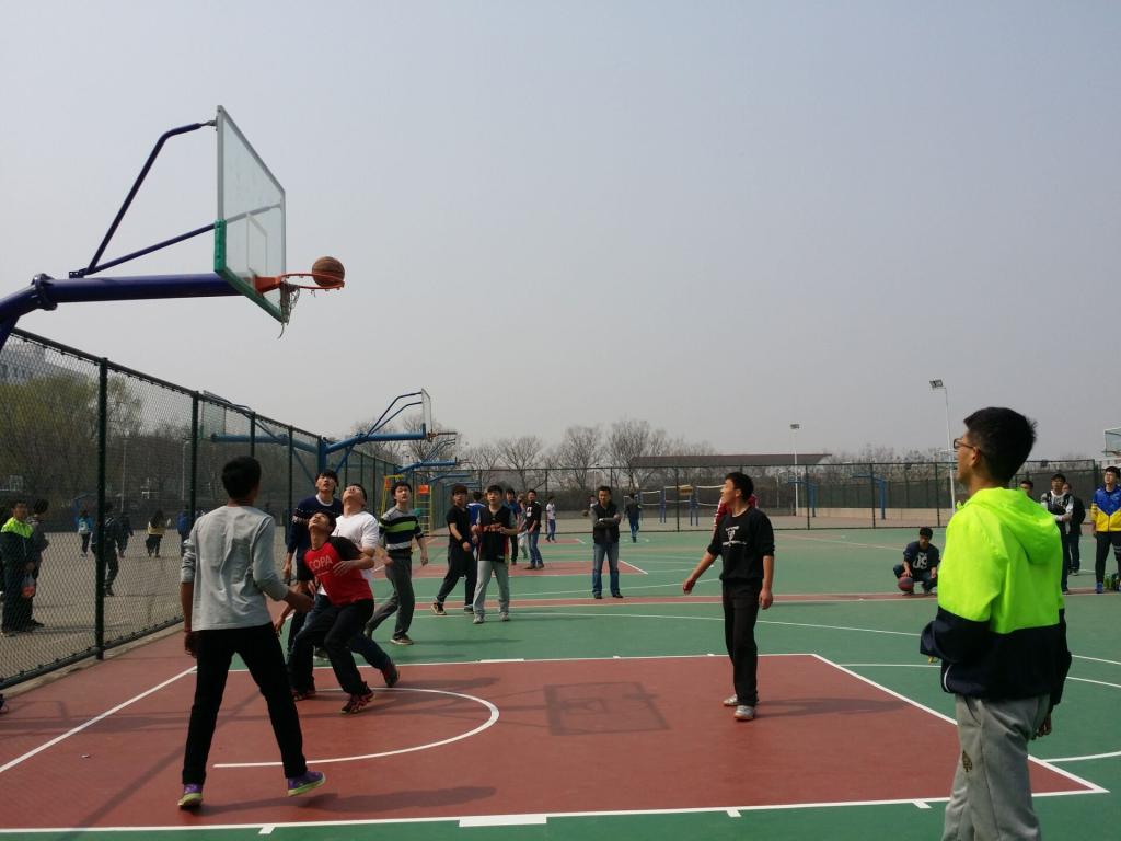 3月7日12:30,“测绘杯”篮球对抗赛在东篮球场正式启动。tyc122cc2015级10个班级以抽签方式两两联谊,组成5个对战小组参与这次5v5全场制篮球比赛。