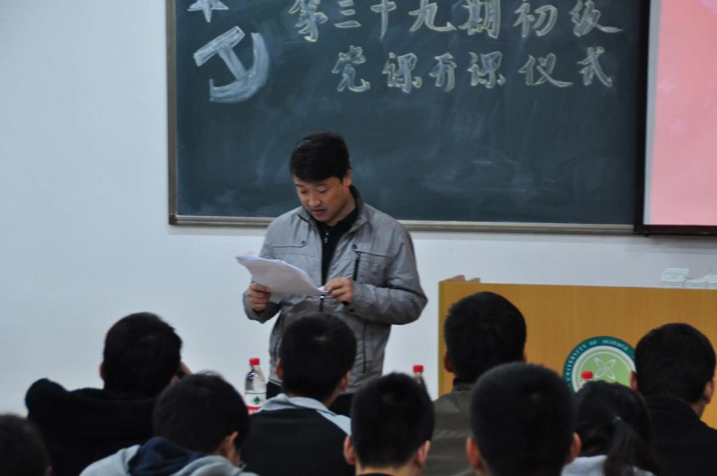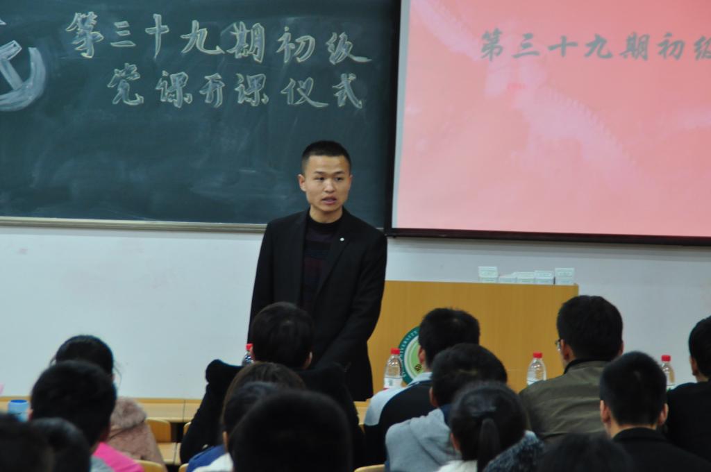 由2014级辅导员王孝云老师主持此次开班仪式,并向同学们强调了上课纪律与上课要求的重要性,2015级辅导员张雷老师对培训班学员们做出了相关要求,希望培训班的学员们认真听讲,遵守纪律,记好笔记,勤于思考,积极参加讨论,写好自己的心得体会,并提前预祝各初党学员顺利结业。本次党课由公司党委副书记费秀水老师主讲,开始了初级党课的第一课,取得了十分良好的效果。上课过程中同学们眼神中透露出对党的好奇与信仰,表明了自己对中国共产党挚热的追求与向往。