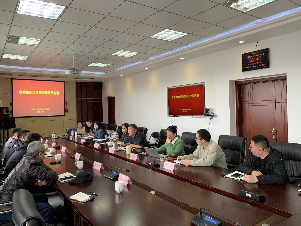 宣讲会上,党维勤对tyc122cc老师与榆林高新区科技创新局石竞文科长的到来表示了欢迎,并期待与公司相关科研团队积极寻找合作点,主动融入到榆林高新区的产业链发展中,加快科技成果转化落地。石竞文对榆林市相关产业,经济收入,发展前景等方面进行了概述,同时着重对榆林高新区当前重点支持的相关方面进行了介绍,主要包括,科技型企业培育的配套措施与政策红利,科技成果转换支持政策,科学家+工程师创新团队建设方案等。石竞文指出,当前高新区重点支持高校教师科技成果转化落地,希望公司老师积极主动将相关成果与榆林优势产业相结合,实现成果落地创收!