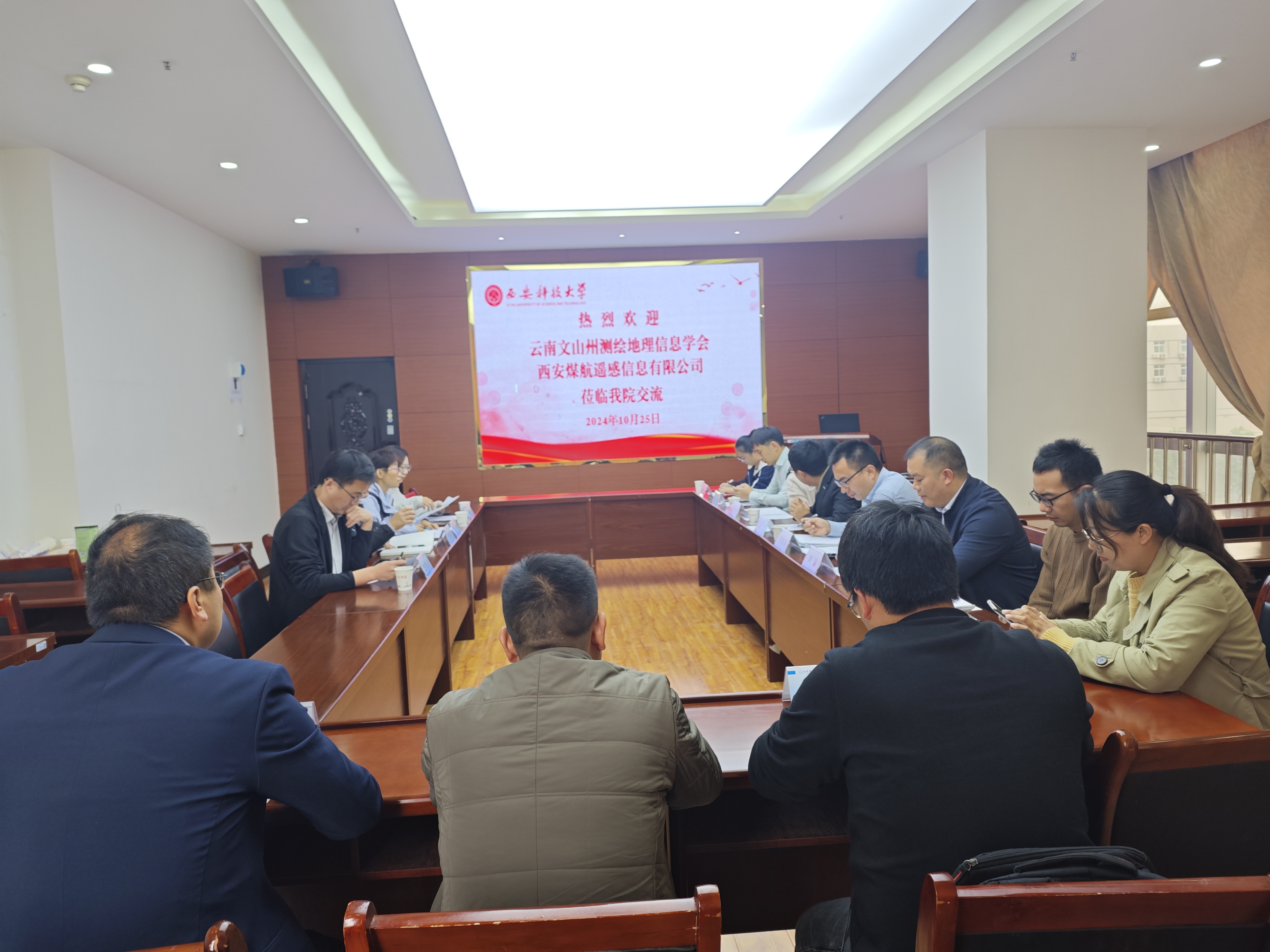 10月25日上午,云南文山州测绘地理信息学会谷雷主任、西安煤航遥感信息有限公司罗东海总经理一行来公司调研交流。经理李朋飞、副经理史晓亮和竞霞、研究生教务办主任宋莹老师参加了交流会。