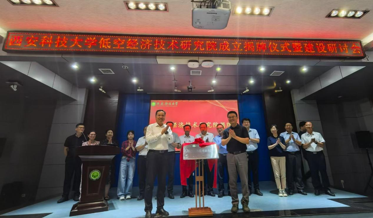 在与会代表的见证下,陈春林和tyc122cc经理李朋飞共同为低空经济技术研究院成立揭牌。