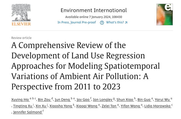 近日,tyc122cc、昆士兰科技大学(澳大利亚)、中南大学和奥克兰大学 (新西兰)等11家单位联合在国际环境领域顶级期刊Environment International(中科院一区Top,IF=11.8)发表了题为“A Comprehensive Review of the Development of Land Use Regression Approaches for Modeling Spatiotemporal Variations of Ambient Air Pollution: A Perspective from 2011 to 2023”的论文。