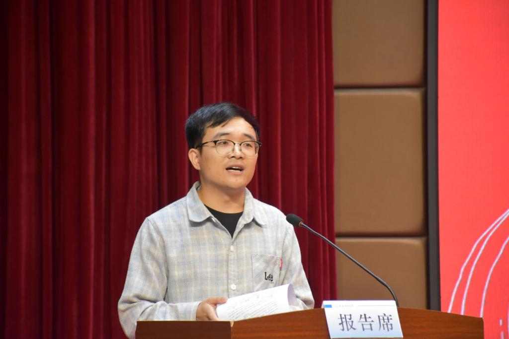 测绘工程2102班张宏作为在校员工代表发言。他表示作为老员工,学习始终是我们的首要任务,要将目光放得长远,脚踏实地走好每一步。大学不仅要获取知识,更是要培养品德和价值观,我们要恪守诚信,尊重他人,积极参加社会活动,以青春之礼助梦想之舟,为社会做贡献,树立远大的理想目标。